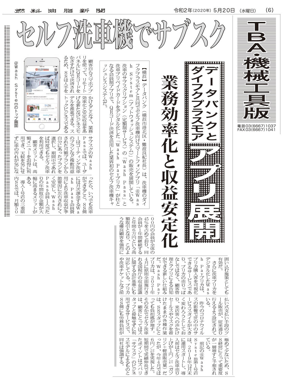 燃料油脂新聞に@Wash Systemの記事が掲載されました。