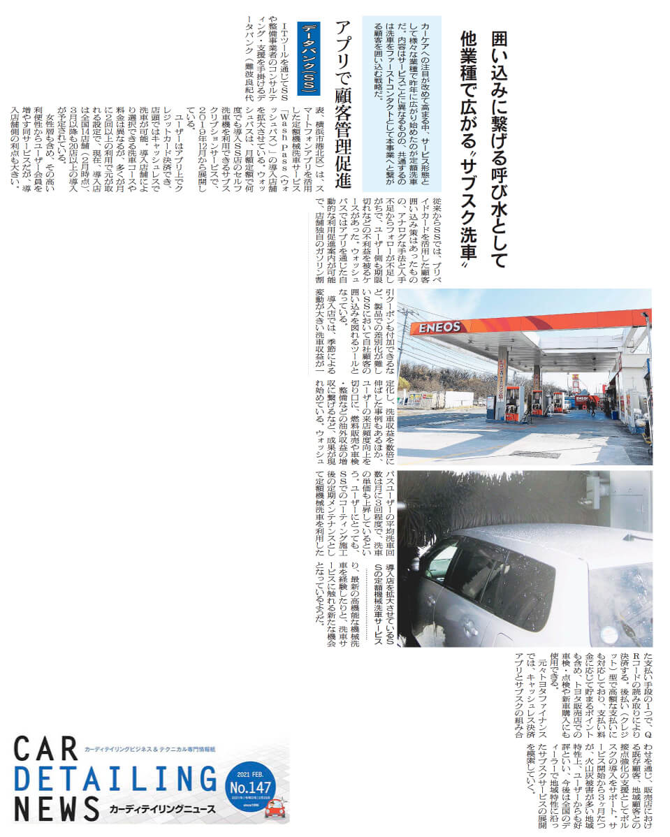 カーディテイリングニュースにWashPassの記事が掲載されました。