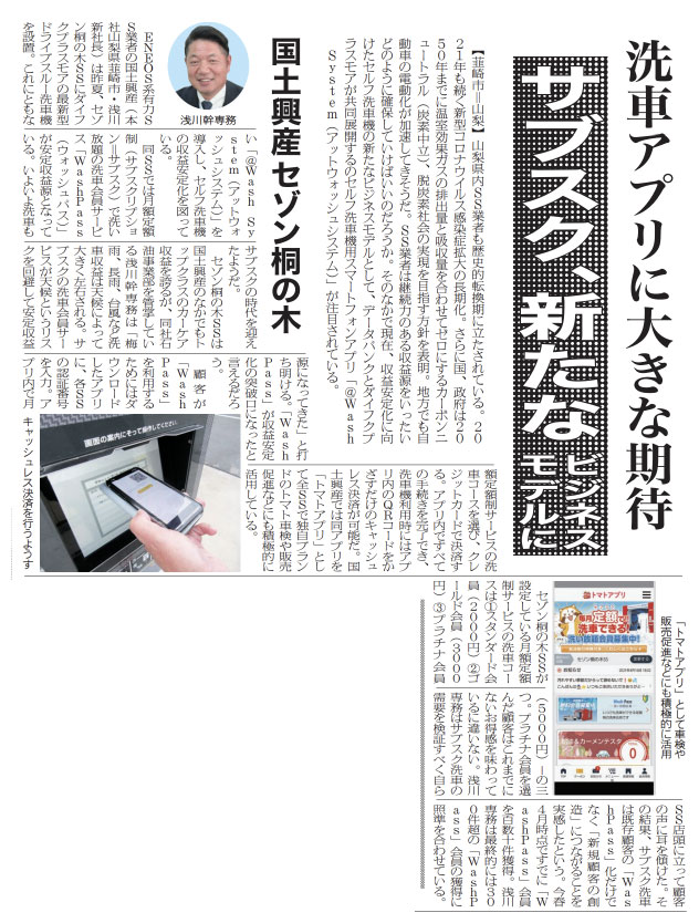 燃料油脂新聞に国土興産株式会社様 WashPassの記事が掲載されました。