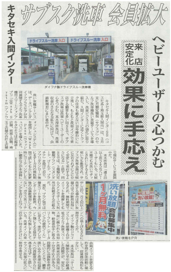 燃料油脂新聞に株式会社キタセキ様 WashPassの記事が掲載されました。